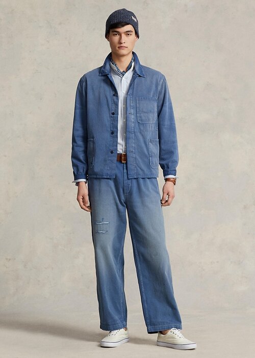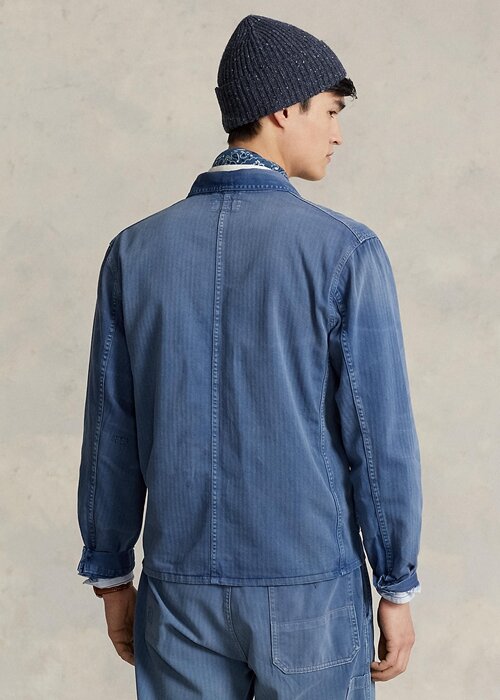 Inspired by French workwear from the early 20th century, this lightweight cotton jacket is garment-dyed and hand-distressed for an authentic vintage look. Ralph Lauren partners with Better Cotton™ to improve cotton farming globally. Better Cotton trains farmers to use water efficiently, care for the health of soil and natural habitats, reduce use of the most harmful chemicals and implement the principles of decent work.