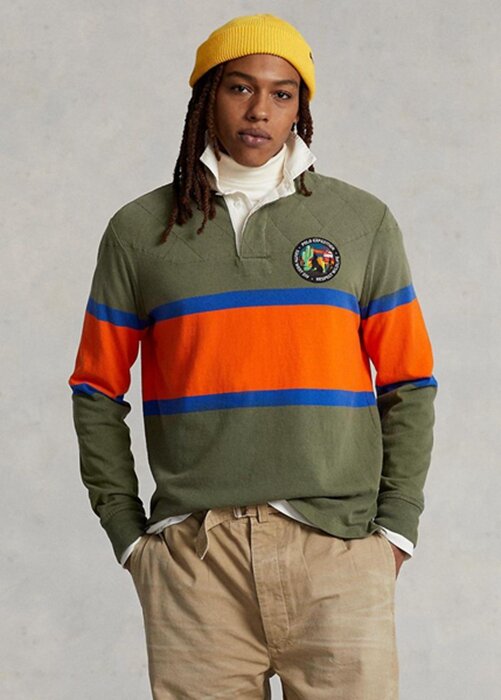 Olive Men’s Ralph Lauren Classic Fit Striped Rugby Polo Shirts