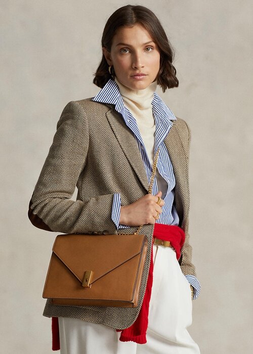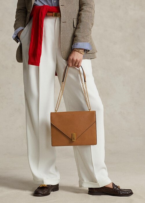 Tan Women’s Ralph Lauren Polo ID Calfskin Envelope Crossbody Bags