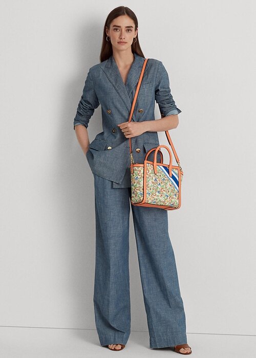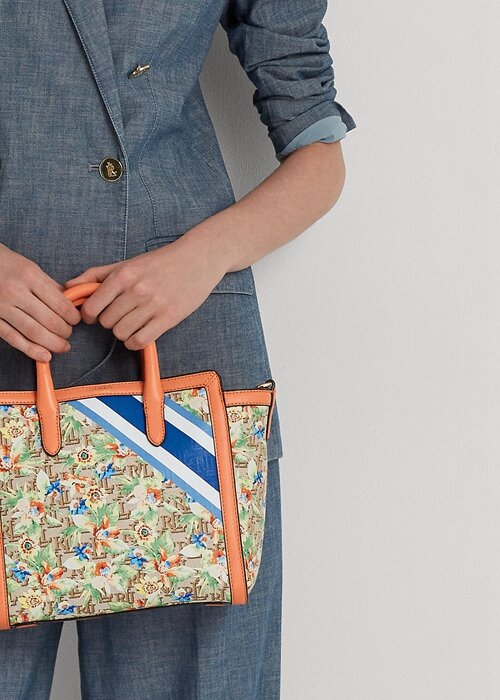Beautifully crafted with a specially woven jacquard fabric and supple full-grain leather trim – which is distinguished by its naturally smooth finish – the medium Tyler tote is designed with a relaxed silhouette, allowing ample room to store your essentials. Utilising three different coloured yarns to create Lauren’s signature monogram motif, it’s accented with sporty stripes and tropical flowers for a vibrant twist on an essential accessory.