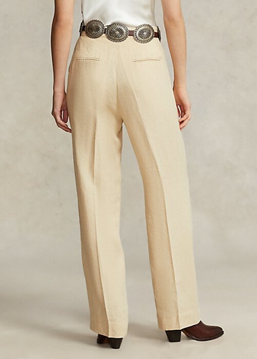 Beige Women’s Ralph Lauren Cropped Straight-Leg Linen Pants