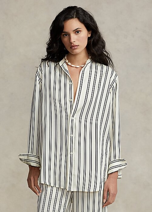 Black / Cream Women’s Ralph Lauren Oversize Striped Satin Shirts
