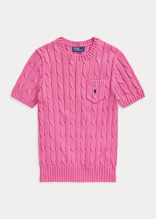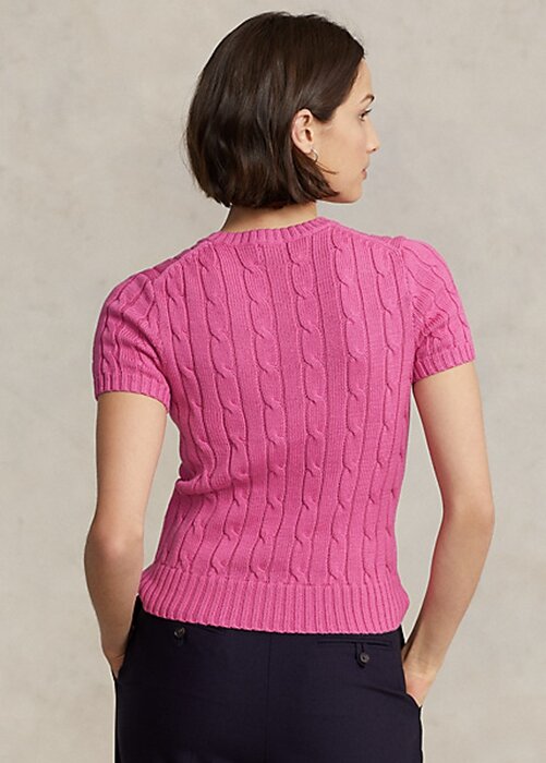Fuchsia Women’s Ralph Lauren Cable-Knit Cotton Short-Sleeve Sweaters