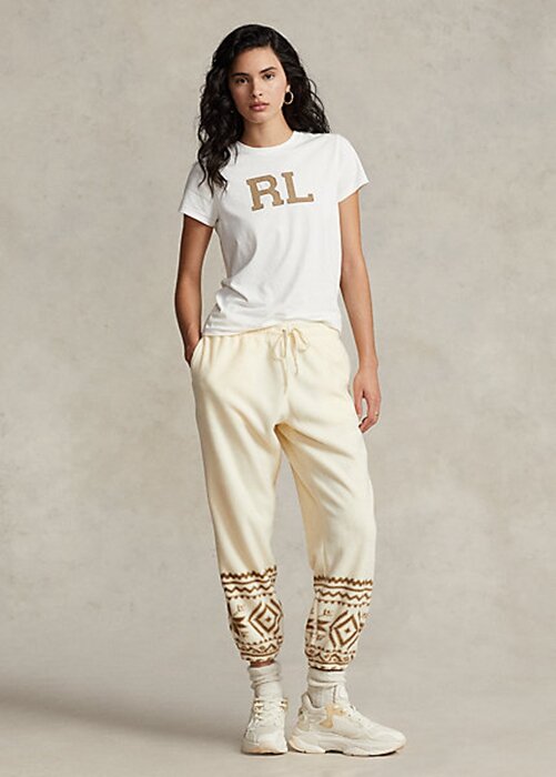 Cream Women’s Ralph Lauren Snowflake-Motif Fleece Sweatpants