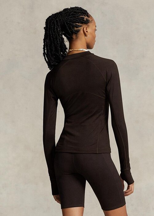 Brown Women’s Ralph Lauren Logo Jersey Long-sleeve Mockneck T Shirts