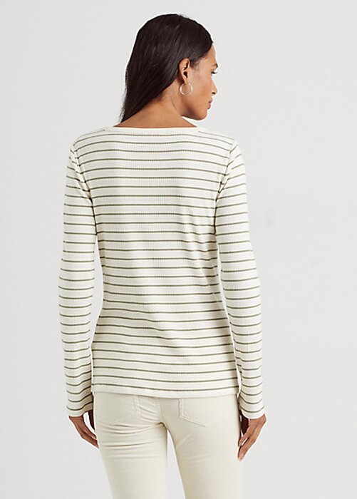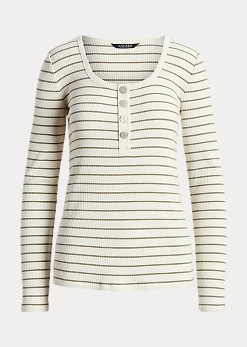 Cream Women’s Ralph Lauren Striped Cotton-Blend Henley Tops