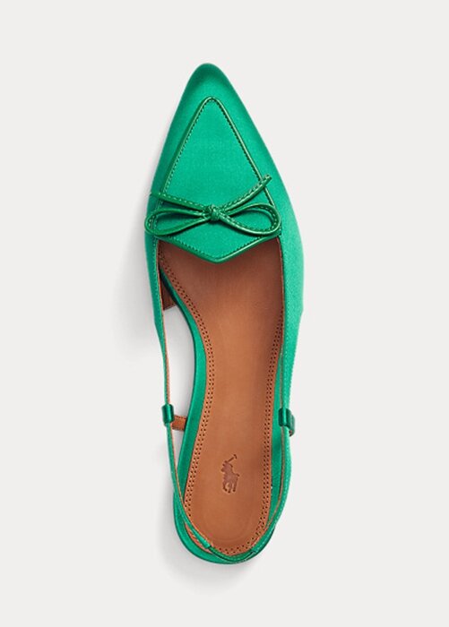 Green Women’s Ralph Lauren Silk-Blend Satin Slingback Flat Shoes