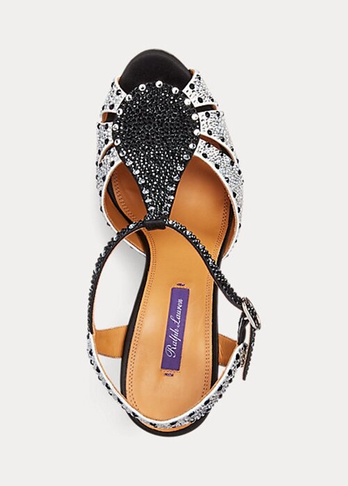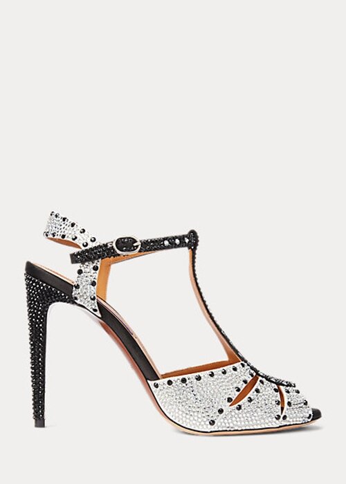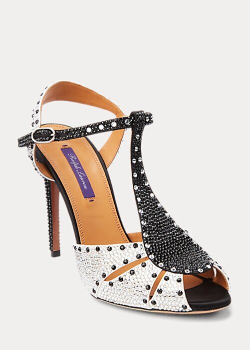 Black / White Women’s Ralph Lauren Vasile Embellished Satin Heels